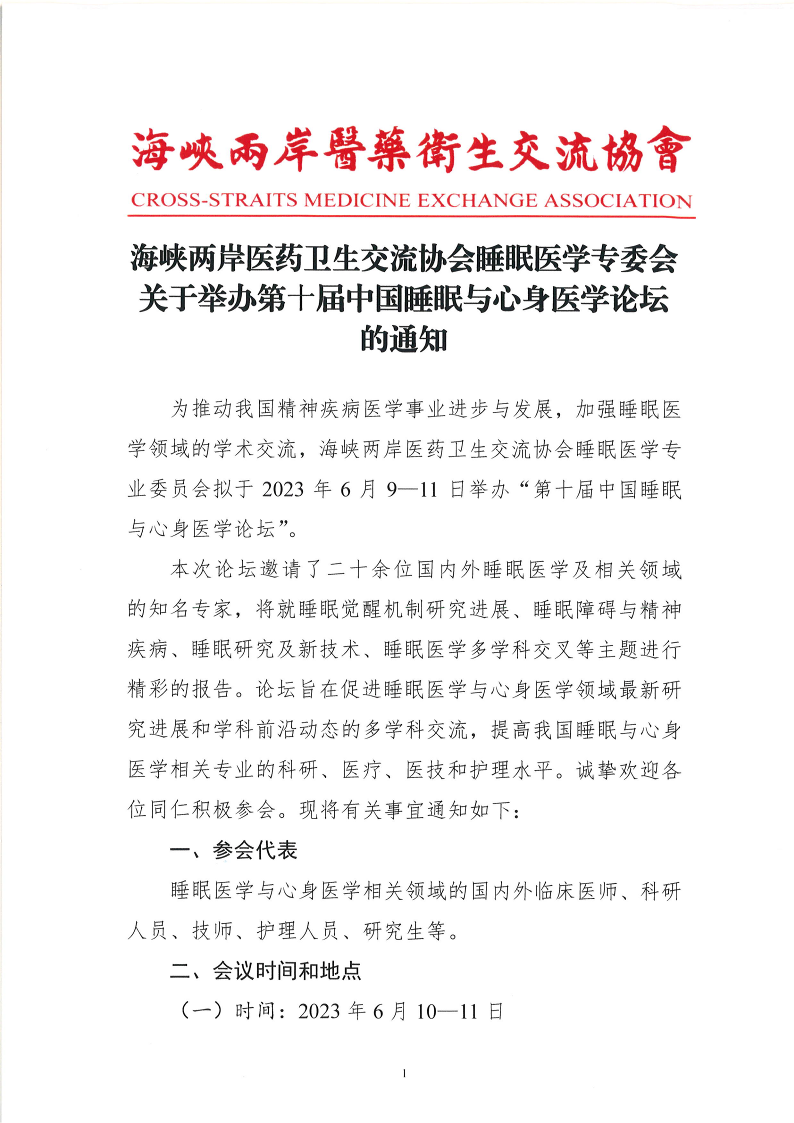 關于舉辦第十屆中國睡眠與心身醫學論壇的通知
