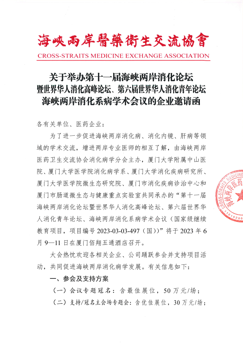 關于舉辦第十一屆海峽兩岸消化論壇的企業邀請函