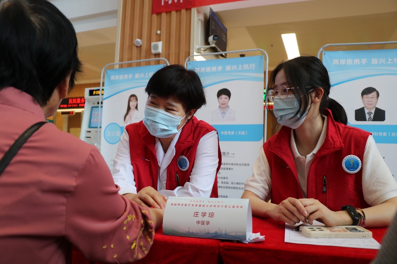 首日,當(dāng)我們抵達(dá)上杭縣醫(yī)院,一群身著紅衣、胸前別著“海峽兩岸醫(yī)藥衛(wèi)生交流協(xié)會(huì)”醒目徽章的臺(tái)灣青年學(xué)子,如同流動(dòng)的火焰,穿梭在醫(yī)院的長(zhǎng)廊之間。這場(chǎng)由海醫(yī)會(huì)發(fā)起的義診活動(dòng),就像一場(chǎng)春雨,滋潤著當(dāng)?shù)鼐用竦男奶铩T诹x診現(xiàn)場(chǎng),我們配合兩岸醫(yī)學(xué)專家充分發(fā)揮自己的專業(yè)所學(xué),為居民們提供細(xì)致入微的醫(yī)療服務(wù)。取號(hào)、登記、問診開方,每一個(gè)環(huán)節(jié)我們都認(rèn)真對(duì)待。期間,我瞧見一位老大爺雙手緊握著治療單,用帶著鄉(xiāng)音的普通話不停地說著感謝,那一刻,我真切地感受到,醫(yī)學(xué)無界,更無海峽之分。我們雖來自臺(tái)灣,但同樣懷揣著救死扶傷的信念,與大陸的醫(yī)護(hù)工作者一起,為守護(hù)民眾的健康而努力。這種跨越海峽的合作,讓兩岸同胞之間血濃于水的情感紐帶在細(xì)微之處悄然編織。