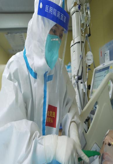 在剛進入病房工作的第一天,大家還處于穿防護感到悶熱、憋氣、對環境的不適應、面對陽性患者有壓力階段,李育玲主任就遇上了需要搶救的緊急情況?;?/font>者突發心臟驟停,面色蒼白,呼之不應,頸動脈搏動消失,她做為一名近20年黨齡的黨員,來不及思考,來不及害怕,白衣天使的使命感讓她沖在了前面,按壓、插管、推藥、配合醫生操作,最后患者搶救成功。