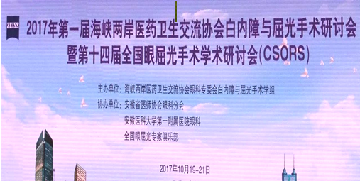 2017年10月19日-10月22日,第一屆海峽兩岸醫藥衛生交流協會(簡稱“海醫會”)白內障與屈光手術研討會暨第十四屆全國眼屈光手術研討會在歷史名城合肥順利召開,來自海峽兩岸、香港地區以及海外的白內障與屈光手術領域的權威專家出席了本次大會。本次大會由海峽兩岸醫藥衛生交流協會眼科專委會白內障與屈光手術學組主辦,由安徽省醫師協會眼科分會、安徽醫科大學第一附屬醫院眼科、全國眼屈光專家俱樂部協辦。國家衛生和計劃生育委員會人才中心陸建成處長、海峽兩岸醫藥衛生交流協會副會長方俊、中華醫學會眼科學分會主任委員姚克、中國醫師協會眼科醫師分會副會長葛堅、中華眼科雜志編輯部主任黃翊彬、安微省醫師協會會長梁朝朝、全國眼屈光專家俱樂部主席王錚、北京301醫院眼科何守志、天津市眼科醫院湯欣、臺灣諾貝爾眼科張朝凱、香港醫學專科學院鄭柏文、重慶醫科大學附二院眼科中心杜之渝、中南大學湘雅醫院眼科夏曉波等專家、教授出席會議并作專題講座。