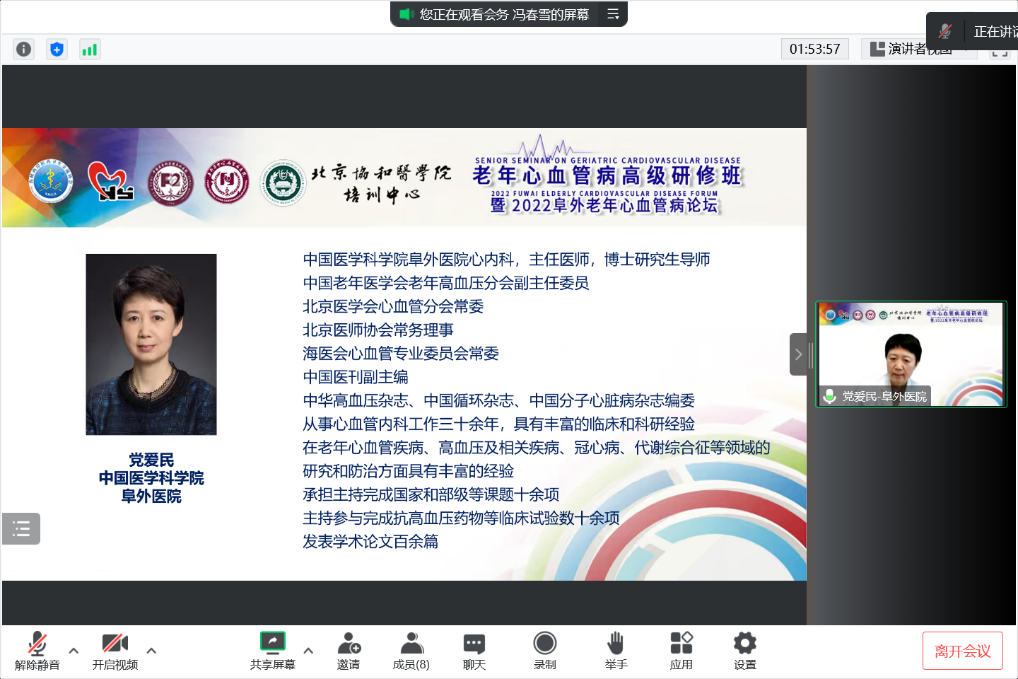 2022年12月2-4日,由海峽兩岸醫藥衛生交流協會心臟康復專業委員會主辦的“老年心血管病高級研修班暨 2022阜外老年心血管病論壇”于線上召開。