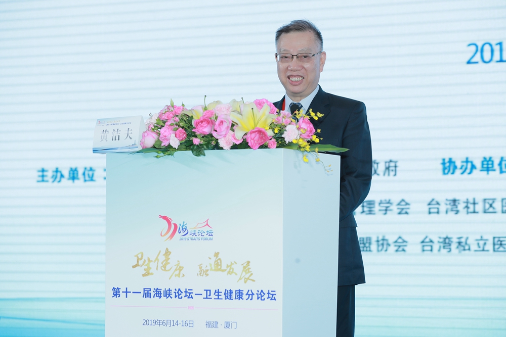 6月15日,第十一屆海峽論壇衛生健康分論壇在廈門舉行。海峽兩岸醫藥衛生交流協會名譽會長黃潔夫出席論壇并致辭。