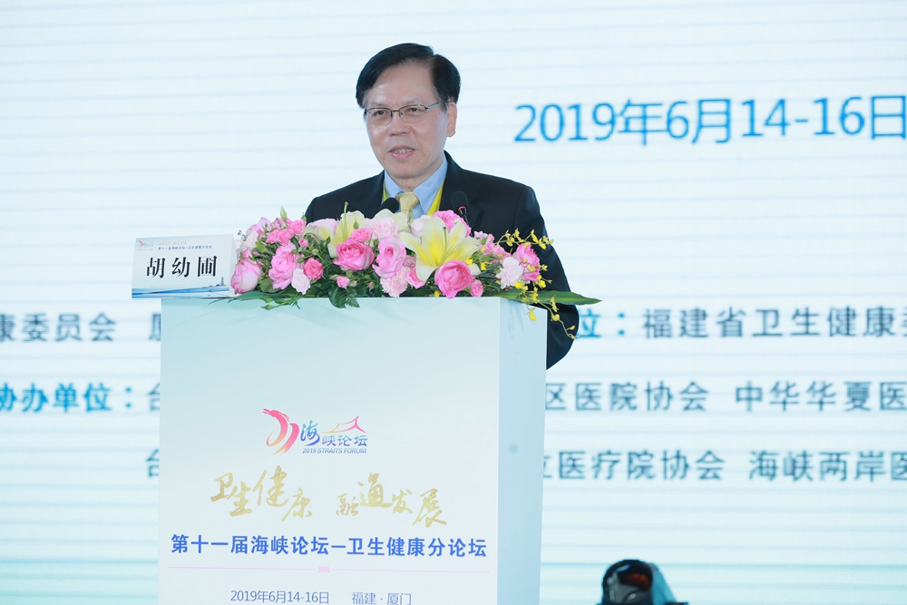 6月15日,第十一屆海峽論壇衛生健康分論壇在廈門舉行。臺北醫學大學特聘教授胡幼圃出席論壇并致辭。