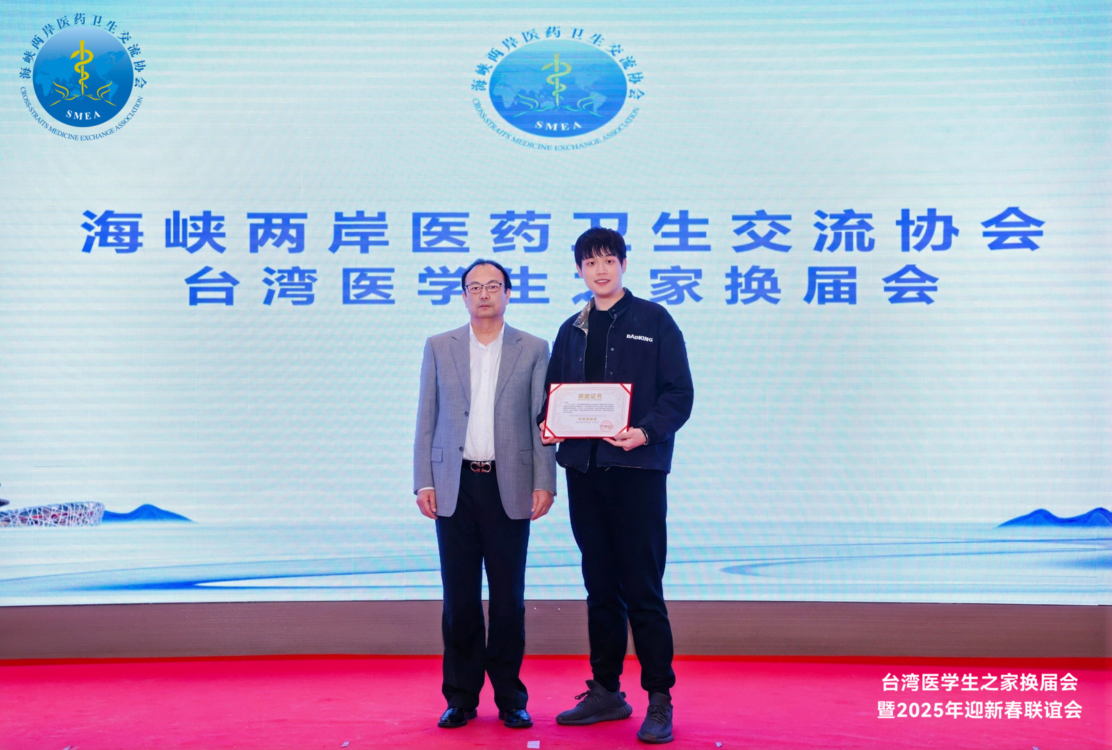 為了表彰第一屆臺(tái)灣醫(yī)學(xué)生之家表現(xiàn)突出的個(gè)人,大會(huì)特設(shè)頒獎(jiǎng)環(huán)節(jié)。高子淮、劉元媛同學(xué)因在籌建臺(tái)灣醫(yī)學(xué)生之家及組織各類活動(dòng)中的卓越貢獻(xiàn)而榮獲特別貢獻(xiàn)獎(jiǎng)證書,他們的事跡激勵(lì)著在場(chǎng)每一位學(xué)子繼續(xù)努力,為兩岸醫(yī)學(xué)青年人文交流貢獻(xiàn)力量。