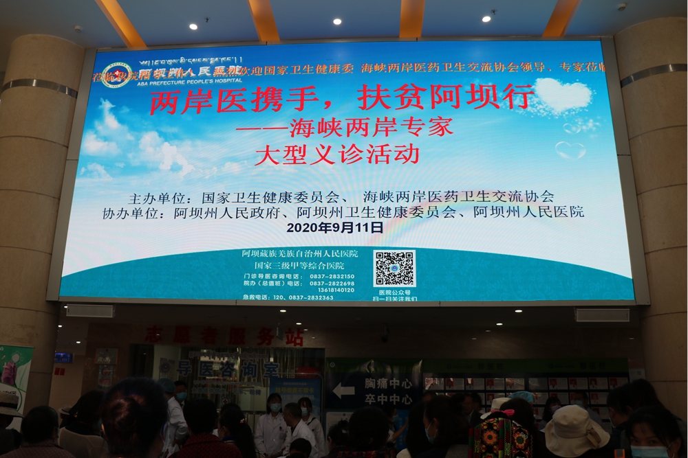 9月11日至13日,在國家衛生健康委員會衛生扶貧工作的指導下,海峽兩岸醫藥衛生交流協會克服新冠肺炎疫情的影響,組織南京明基醫院、臺灣聯新國際醫院、湖南旺旺醫院、廈門長庚醫院、東莞臺心醫院等臺資醫院,北京清華長庚醫院、北京中醫藥大學東直門醫院、四川省人民醫院、四川華西第二附屬醫院、四川省腫瘤醫院、成都中醫藥大學附屬醫院等數家三甲醫院的20余名臺灣籍醫師和大陸臨床專家,來自內外婦兒、中醫和耳鼻喉等科室。海醫會組織義診團再次走進雪域高原,來到四川阿壩藏族羌族自治州,開展了以“兩岸醫攜手,扶貧阿壩行”為主題的健康扶貧義診活動。